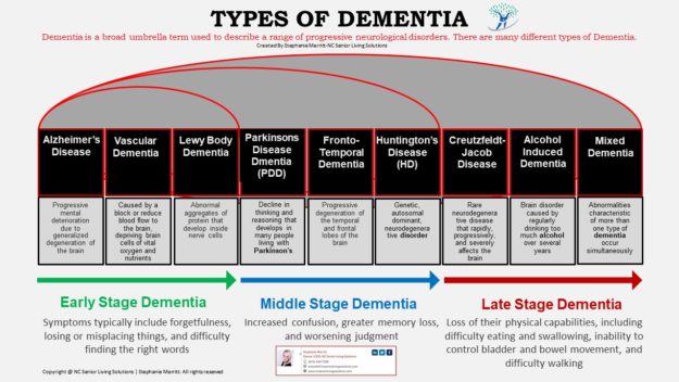 There’s always been something that I’m very passionate about when it comes to Dementia. It’s the fact that Dementia is the Umbrella Disease and Alzheimer’s is only ONE type of several types of Dementia that exist. With that being said, I decided to create a chart for everyone to print, share, learn from and help…